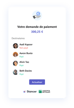 Pour encaisser des paiements sur Microsoft Teams, il vous suffit d’installer l’application Stancer pour envoyer une demande de paiement dans la conversation de votre choix. Vos clients pourront effectuer leur paiement en quelques clics via une page sécurisée. Suivez ensuite l'avancée du paiement dans la conversation ou sur votre tableau de bord dédié.