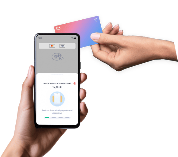 Trasforma il tuo smartphone in un terminale di pagamento. Accetta carte bancarie,Google Pay,Apple Paye altri portafogli digitali direttamente sul tuo dispositivo.